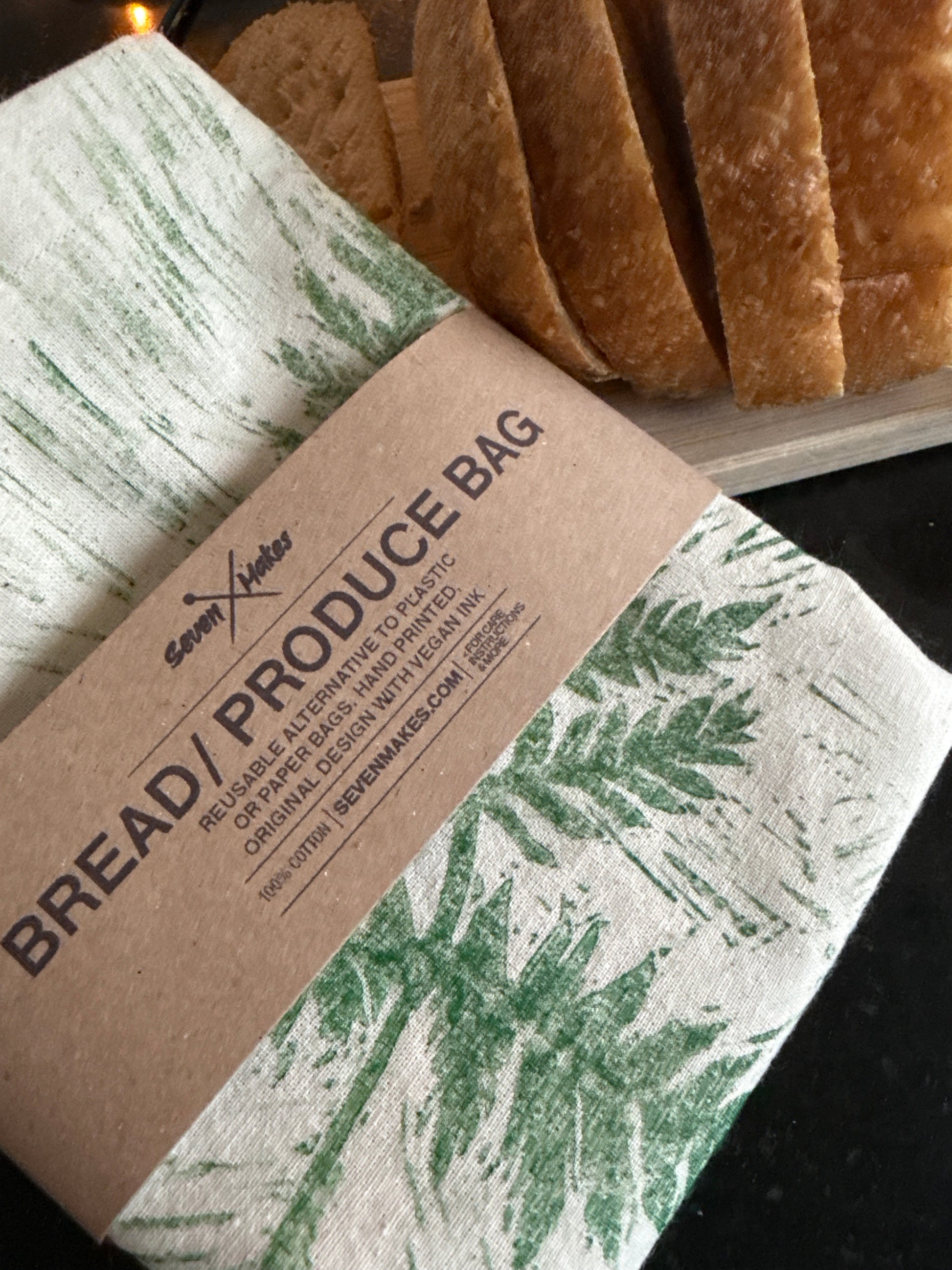 Made from Seven Makes original hand printed cotton, the bags have a drawstring closing meaning they can be hung or easily carried - perfect as a gift for a bread making friend or just for yourself, they can pop in your bag so you don’t need to take the shop packaging! ♻️