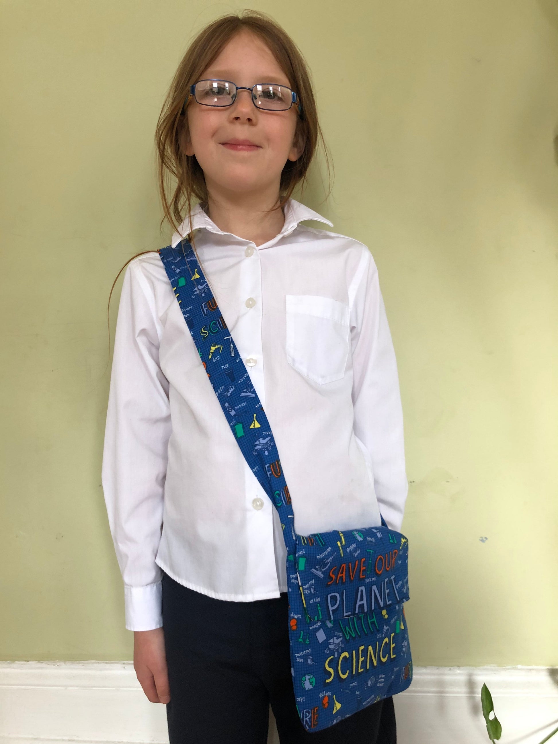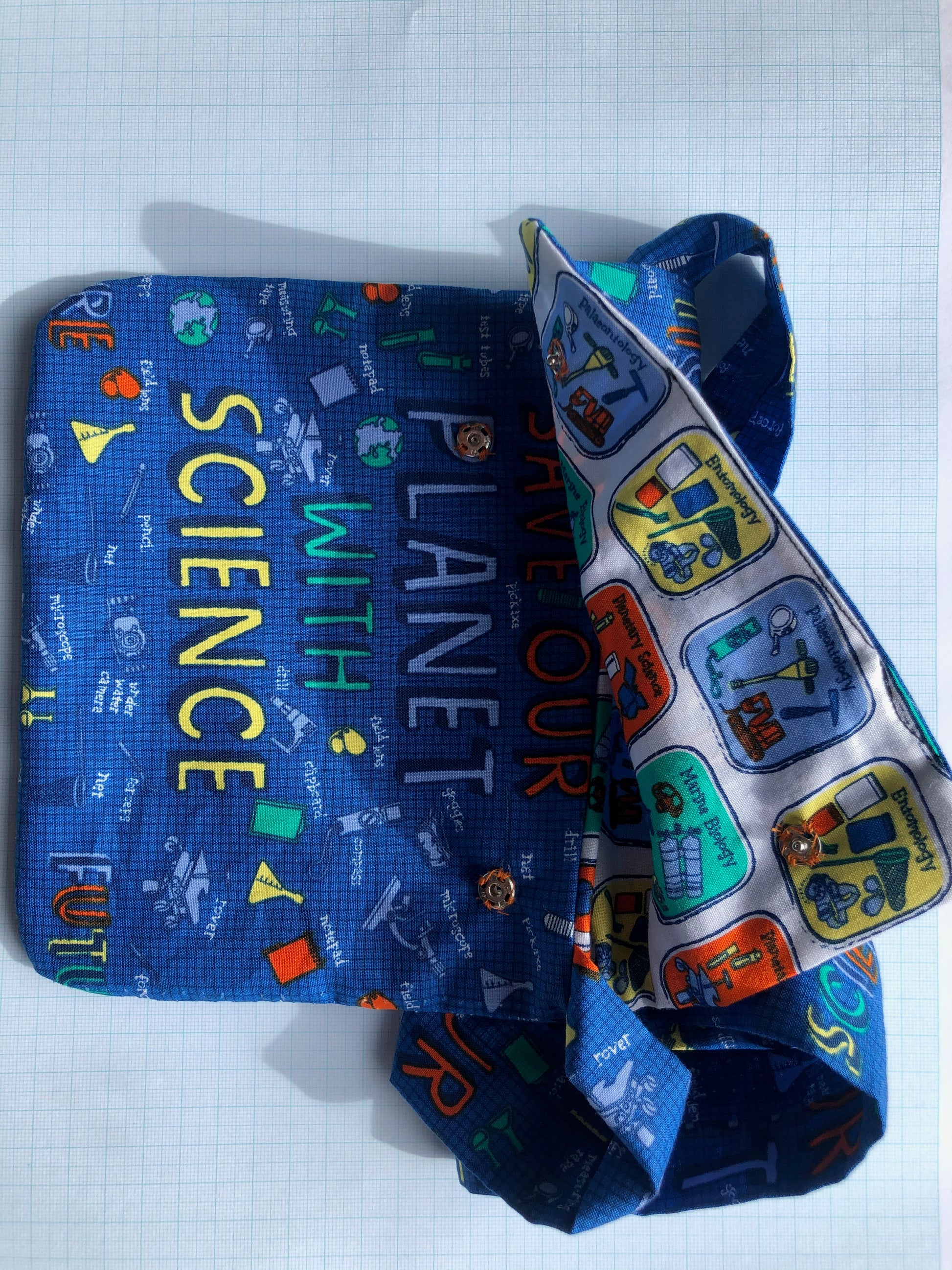 The Blue "Science" fabric is part of the Natural History Museum Collection and proclaims "Save the Planet with Science" and "future scientist' - the coordinating liner fabric has another super cool graphic with loads of different science areas - perfect for carrying your experiments and including two poppers on the flap to secure it whilst on your way to the lab and back!