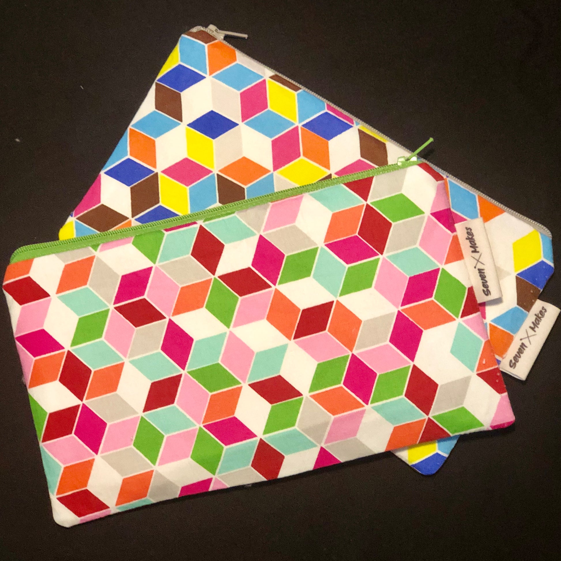 Lined zipper bag - wash bag, pencil case, clutch bag - Multi Cube fabric