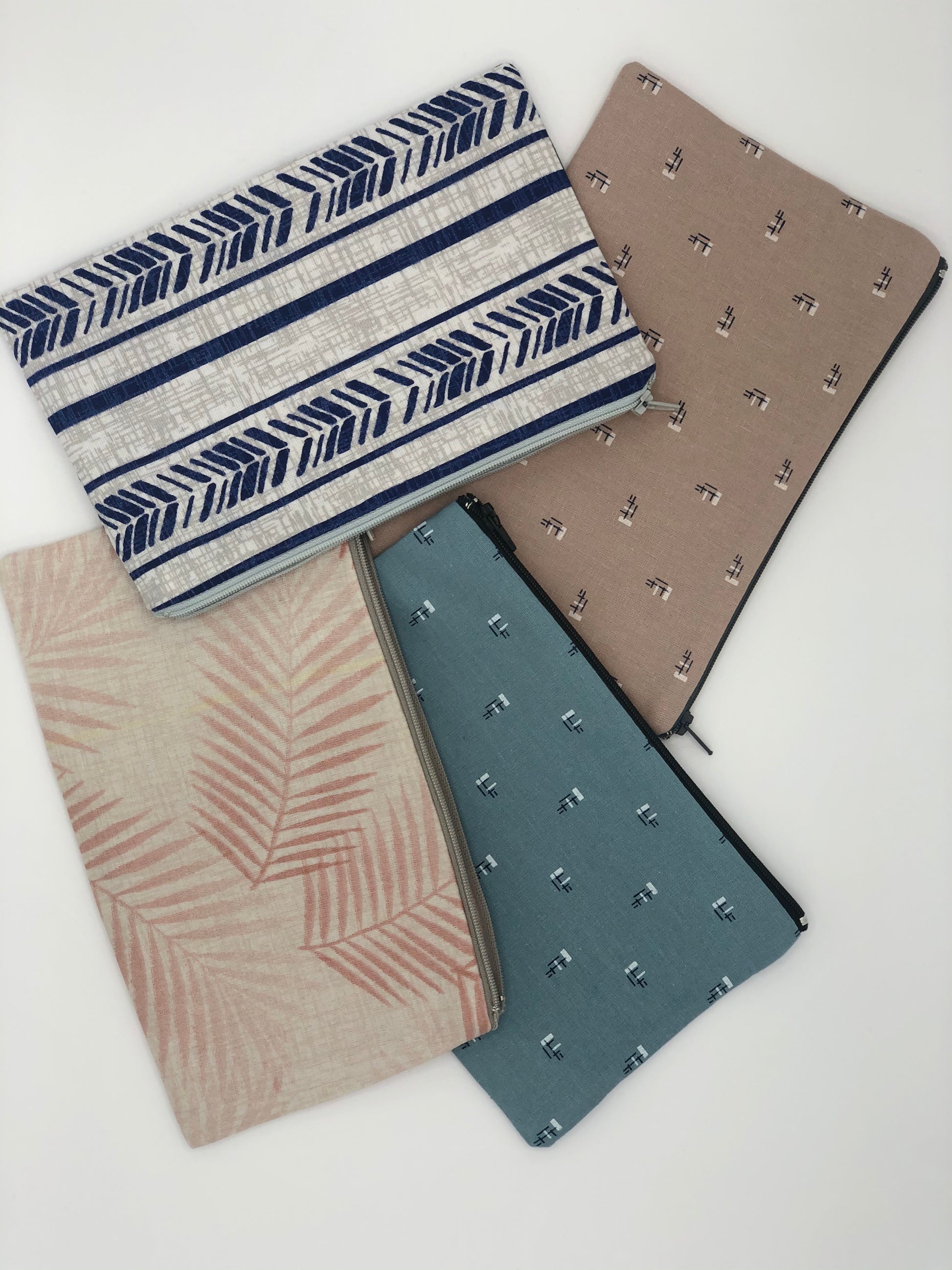 These natural fabrics are complimented by a coordinating lining and contrast zipper. The bag is great for stashing anything away - from craft supplies to art materials, medications on the go or even as one of our COVID kits! All cotton and machine washable up to 60degrees C The zipper comes in two sizes; Regular (around 22cm wide by 12cm) and Deep (around 22cm wide by 17cm), with Regular being a perfect size for a pencil case (but can still fit a passport!) and the Deep will fit even more of everything but also great as one of our COVID kits!