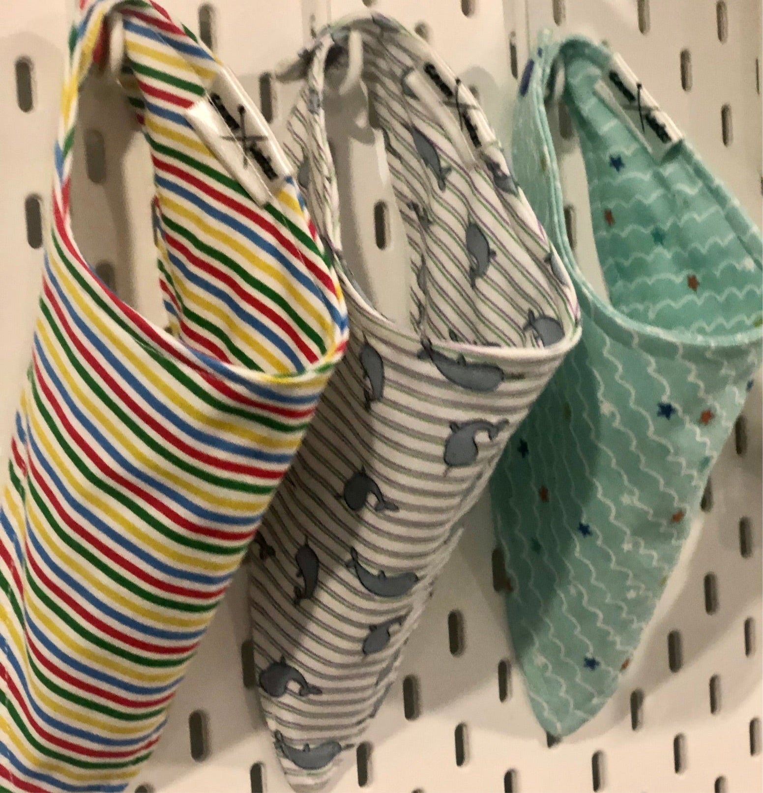 Made from the loveliest organic cotton jersey, these bandana baby bibs are double sided so easily reversible!