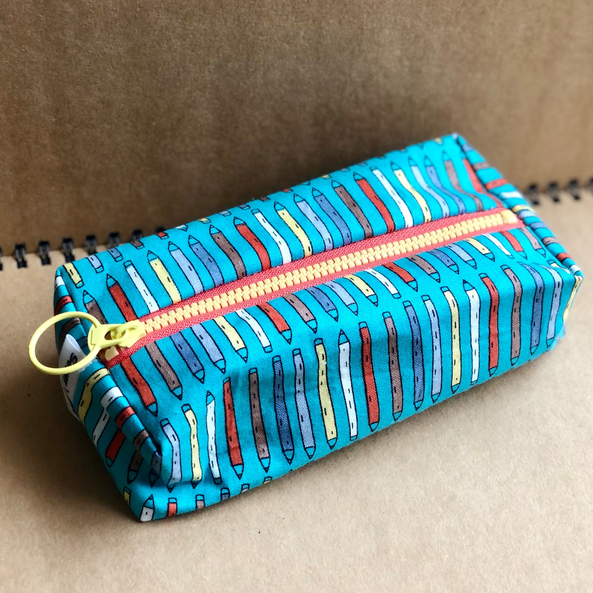 sort all your pencils out with this boxy zipper pouch! it's got a fab, coordinating 100% cotton lining and a fun, chunky zip!