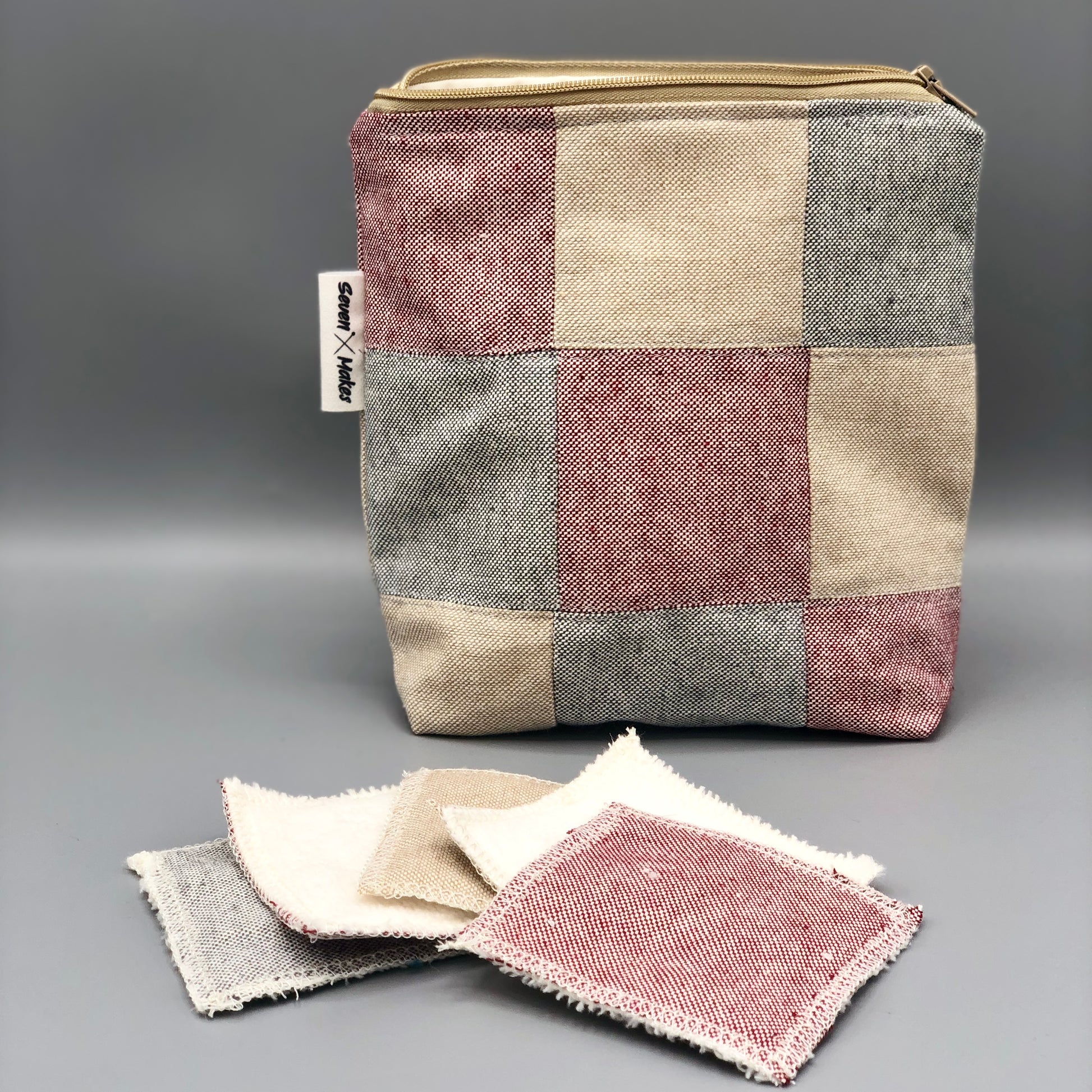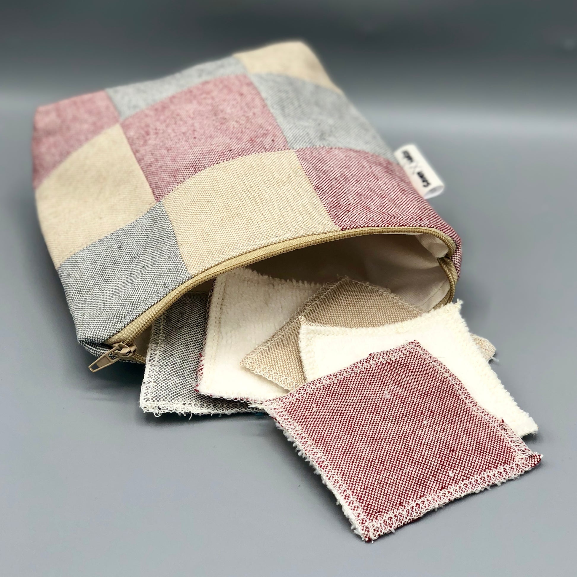 Anyway, I’ve patched it up and made it into a cool, waterproof lined wash bag and have even made some matching double sided reusable facial pads!